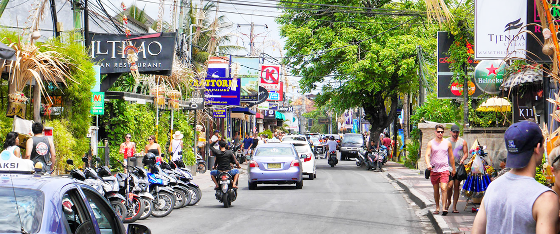 Jalan Raya Seminyak is the main walking street of the Seminyak resort area in Bali. The 1.8-km-long street offers an eclectic mix of local and international fashion boutiques, galleries and art shops alongside cafés, bars and restaurants.