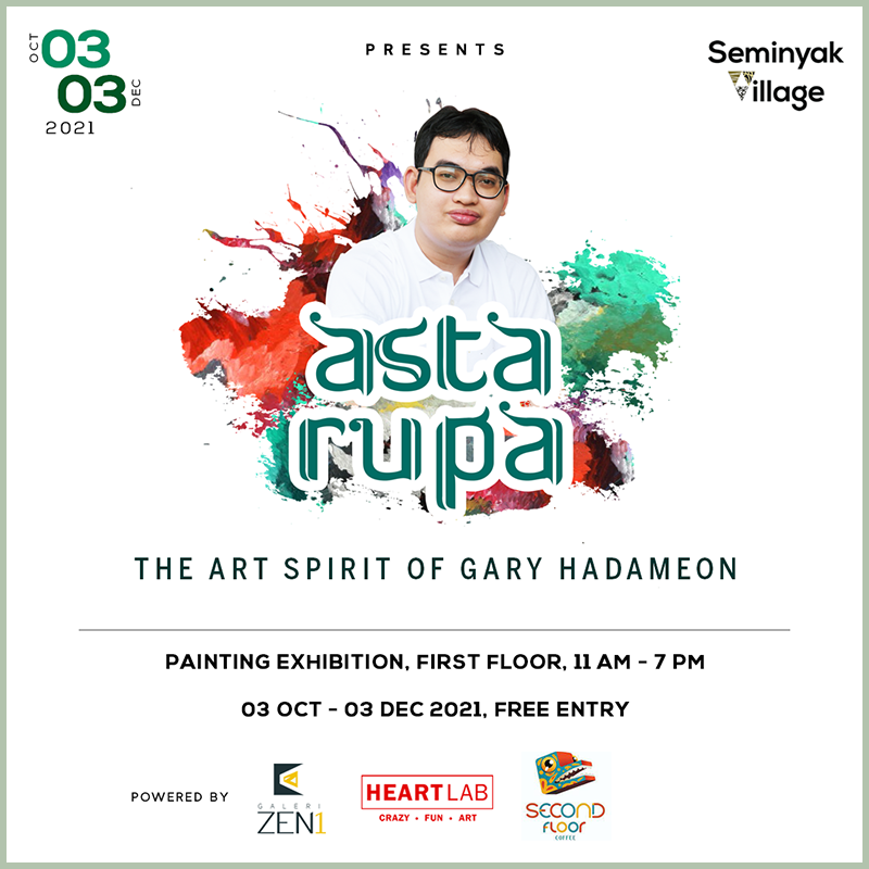 The art spirit of Garry Hadameon, Painting Exhibition, Seminyak Village 1st Floor, 11 am – 7 pm, Free Entry. The standard health protocol will be followed, please wear your mask properly and please bring your vaccinated certificate during visiting Seminyak Village.