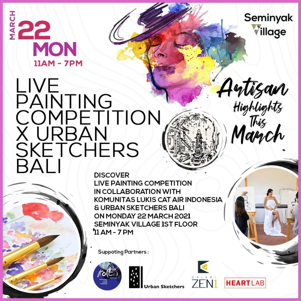 Discover Live Painting Competition X Urban Sketchers Bali 22 March 2021, Prize Cash Money + Certificate. Live Sketch performance around the mall From Urban Sketchers Community in Bali and Q&A session about the activity Urban Sketchers In Bali. GALERI ZEN 1 in Collaboration with Urban Sketchers Bali SEMINYAK VILLAGE 1ST FLOOR