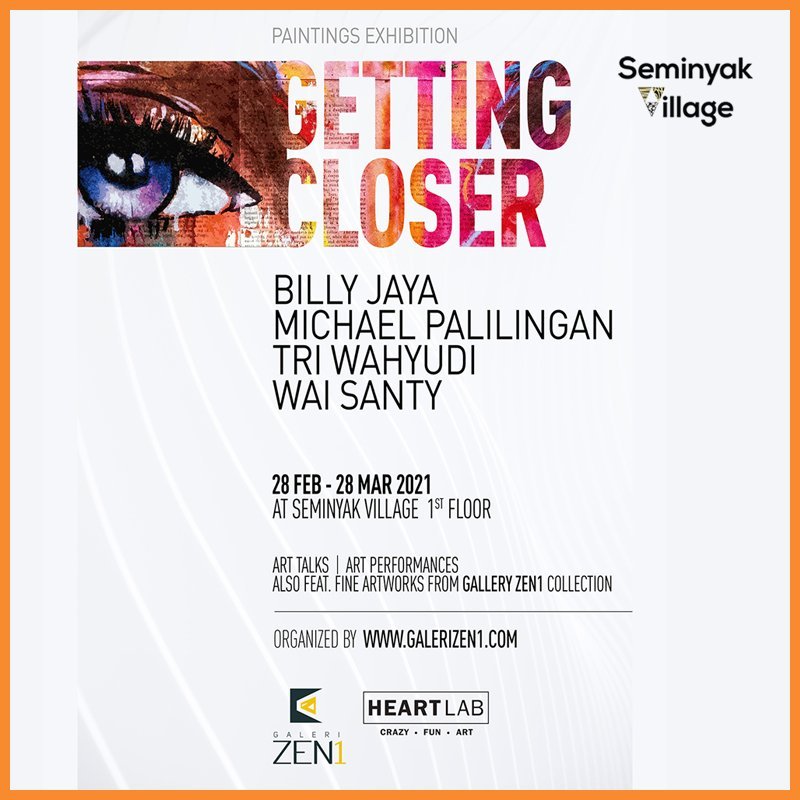 As part of its commitment to support the Arts during the pandemic, Seminyak Village presents the 2nd collaborative Art Exhibition: “GETTING CLOSER” in collaboration with painters Billy Jaya, Michael Palilingan, Tri Wahyudi and Wai Santy. Seminyak Village 1st Floor,